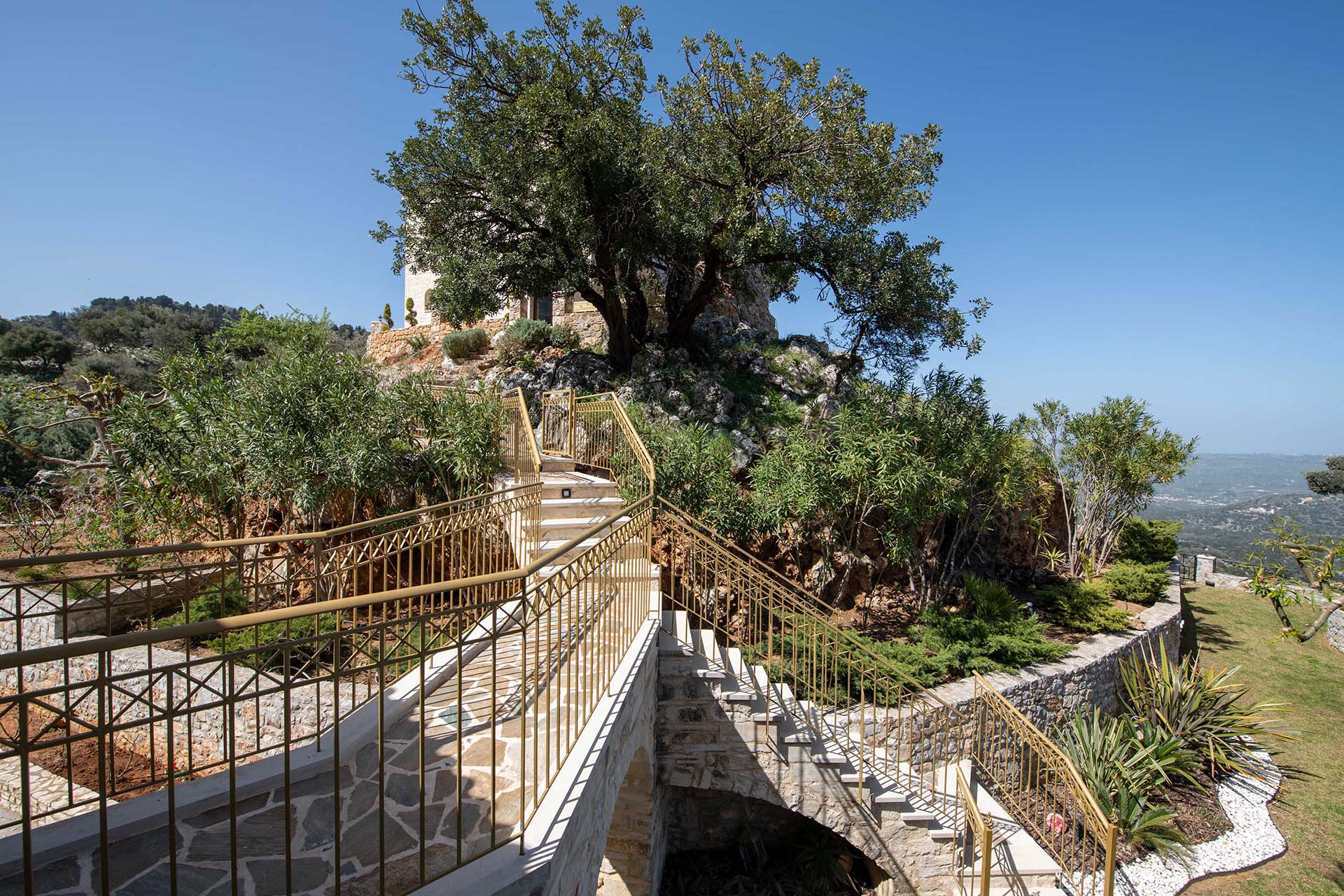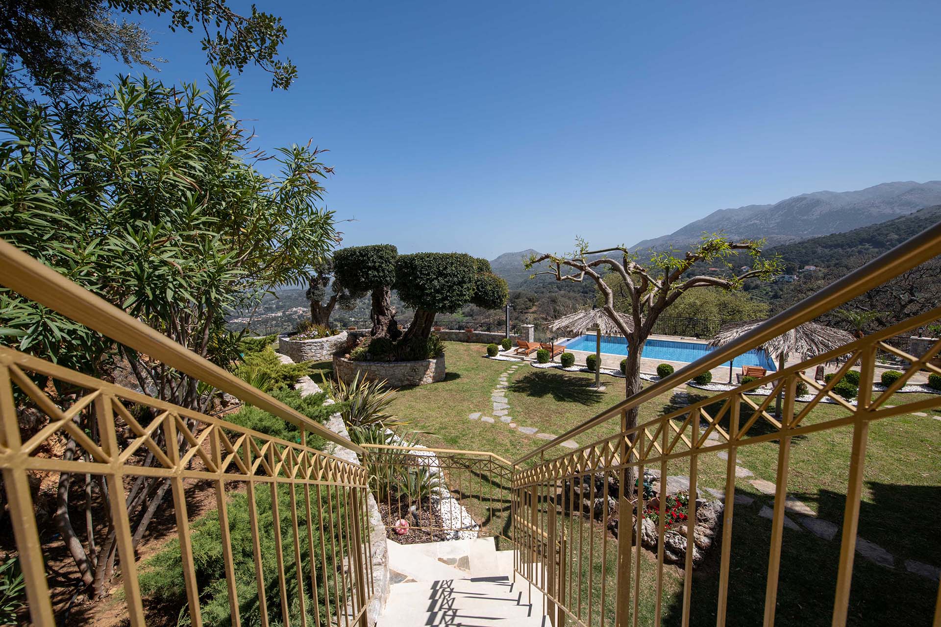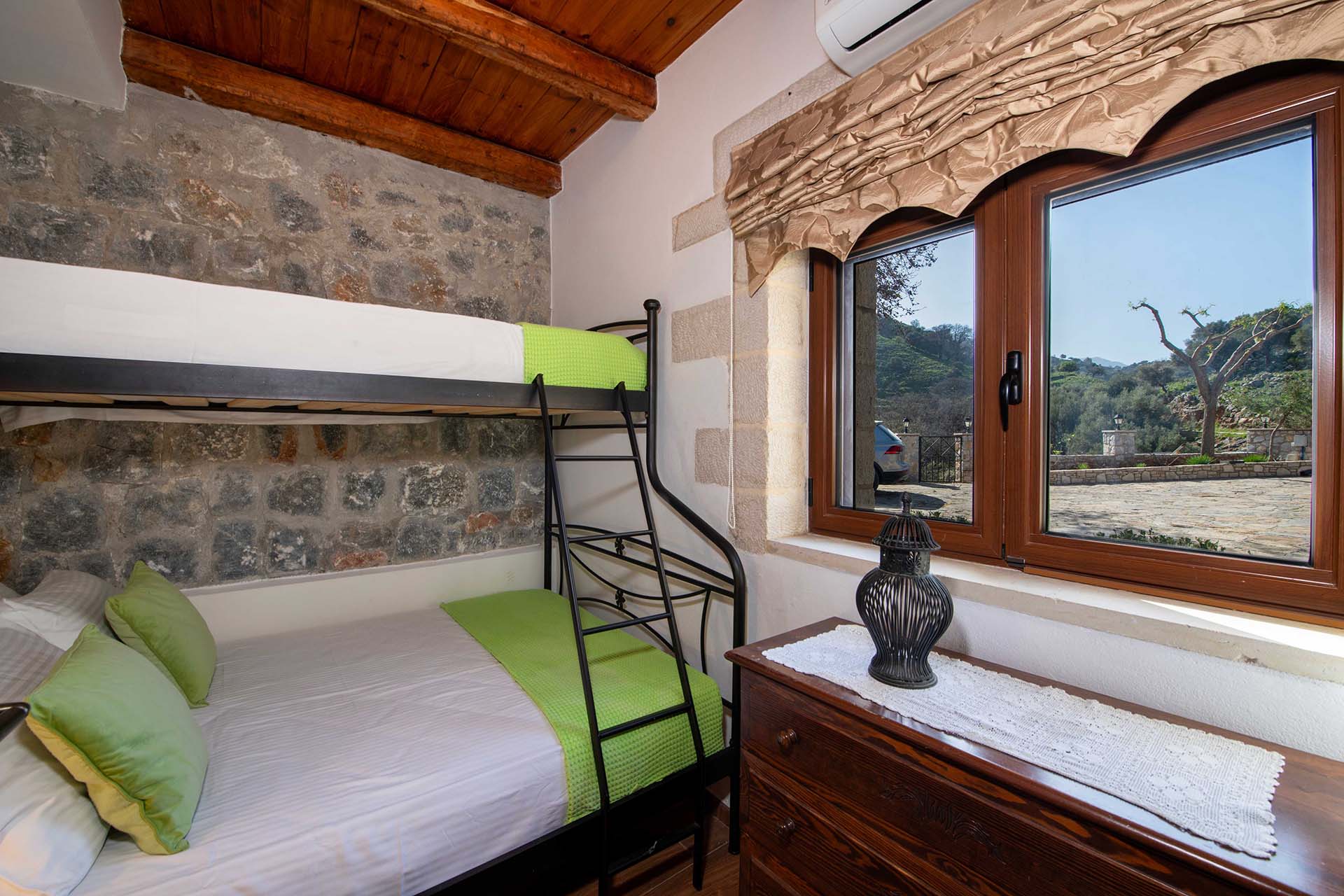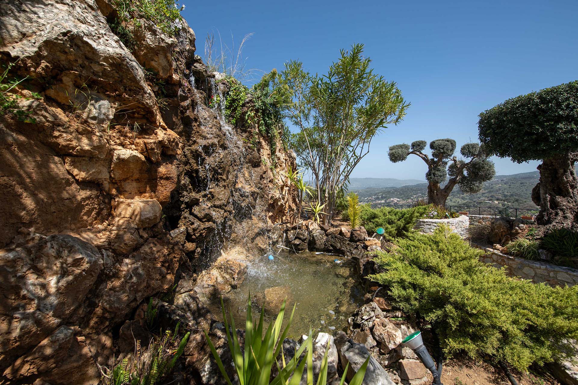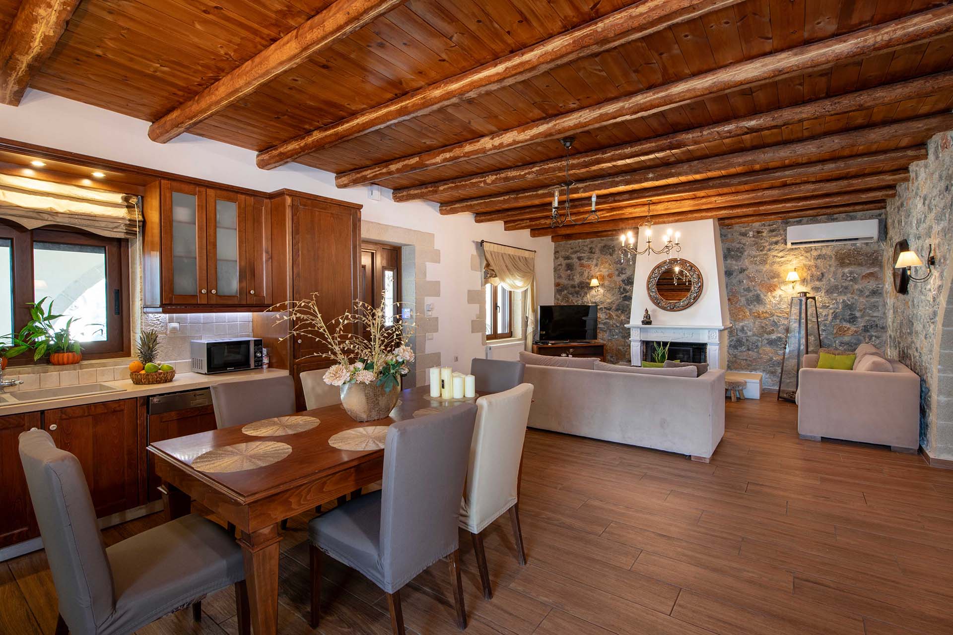 Geroulios Kastro – Superior Villa is located in the hills above Emprosneros, a quiet village in the Apokoronas region of Chania. The area is rural and surrounded by greenery, with very little through traffic and no nearby buildings.