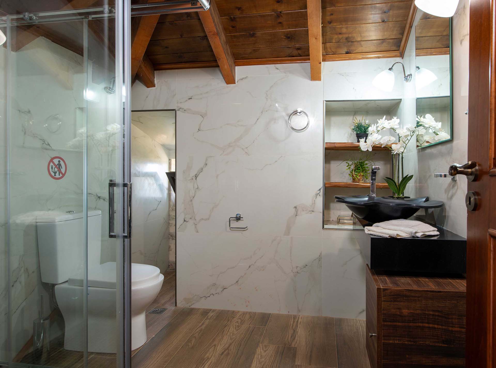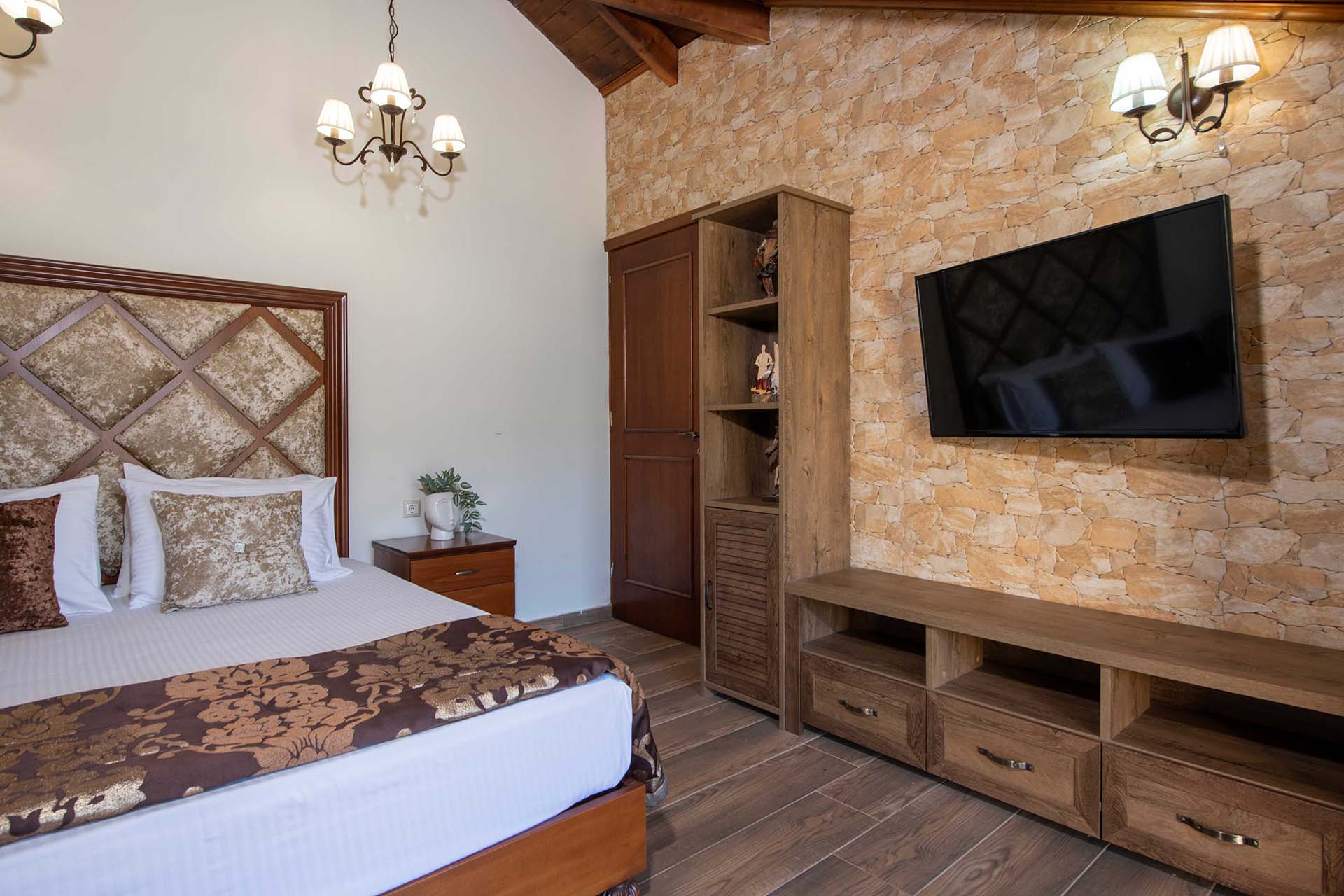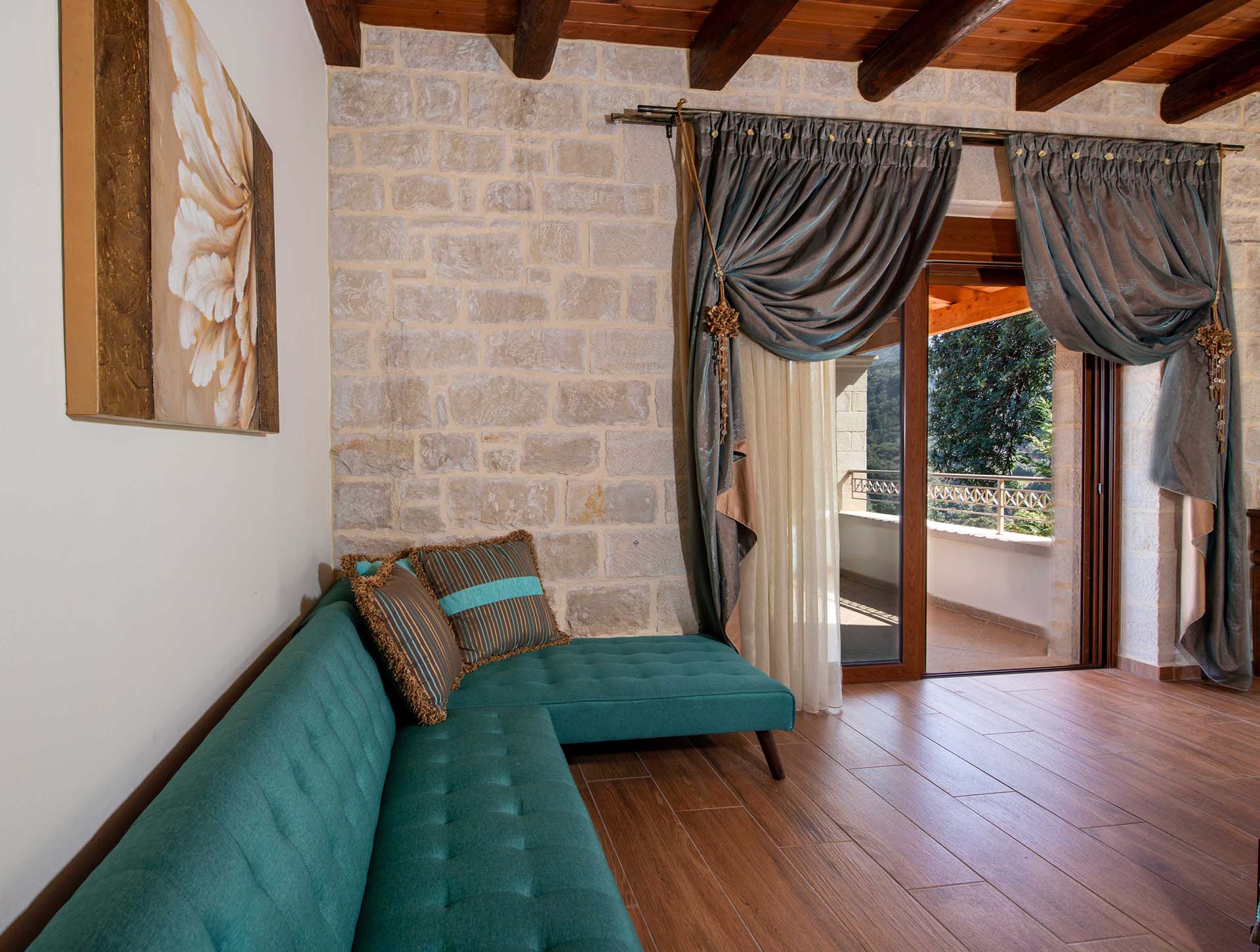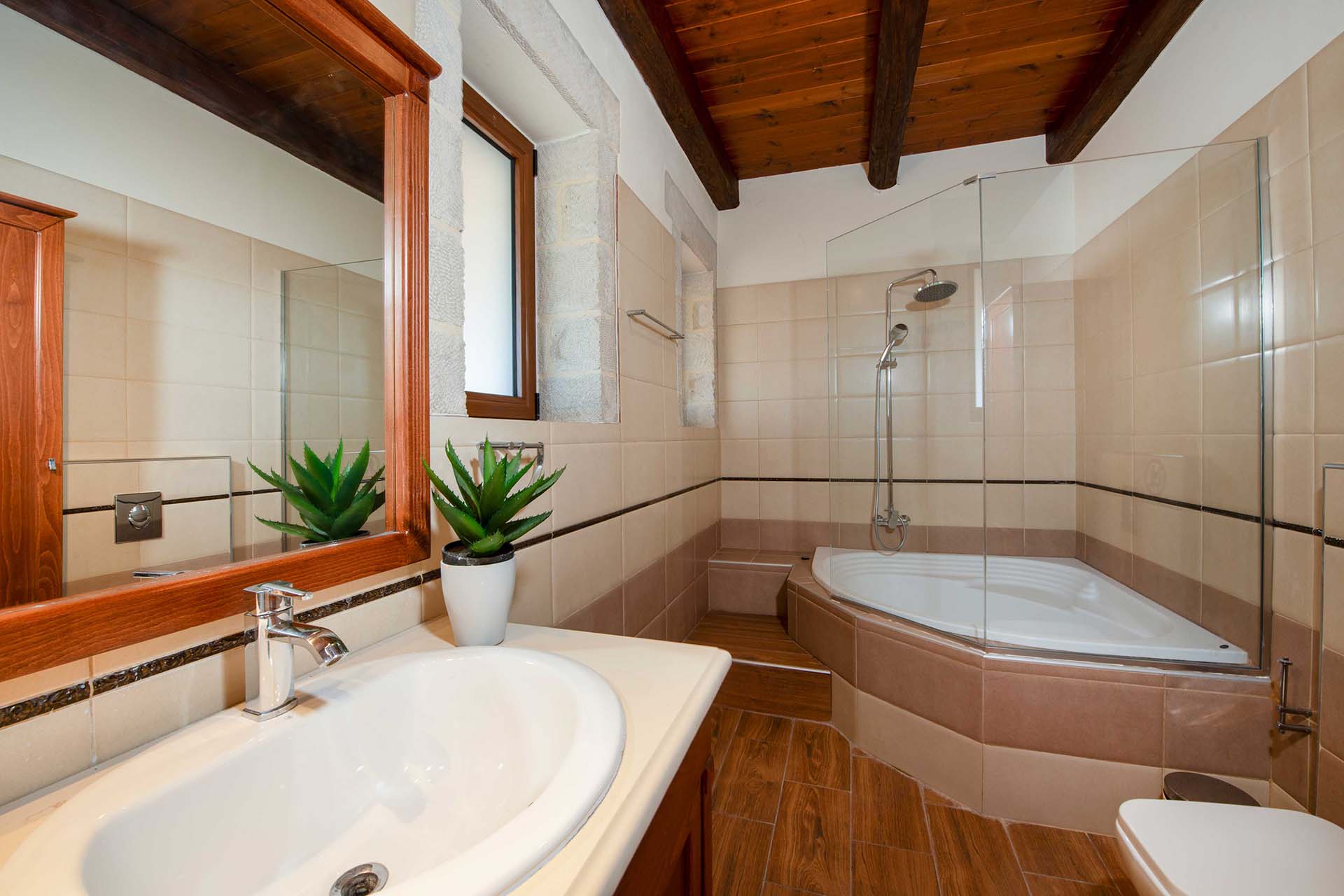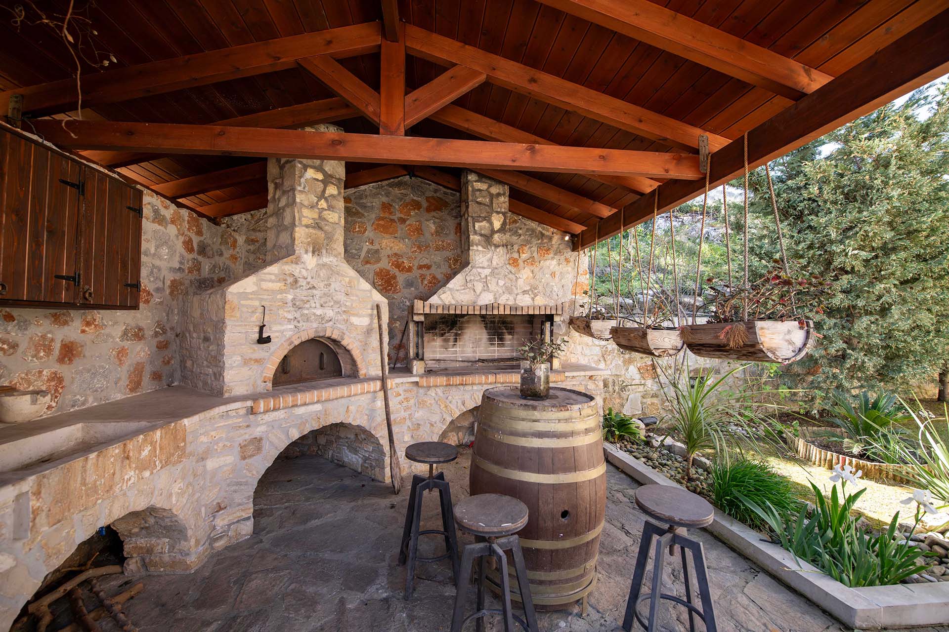 Geroulios Kastro – Superior Villa is located in the hills above Emprosneros, a quiet village in the Apokoronas region of Chania. The area is rural and surrounded by greenery, with very little through traffic and no nearby buildings.