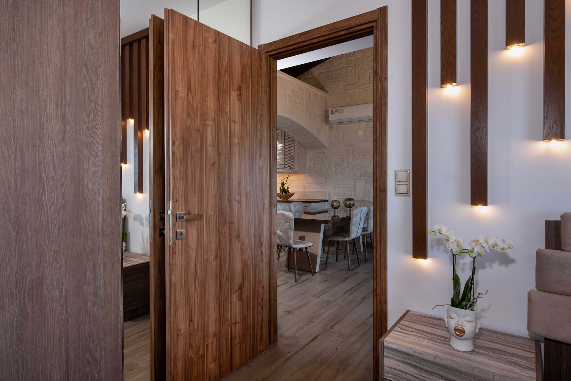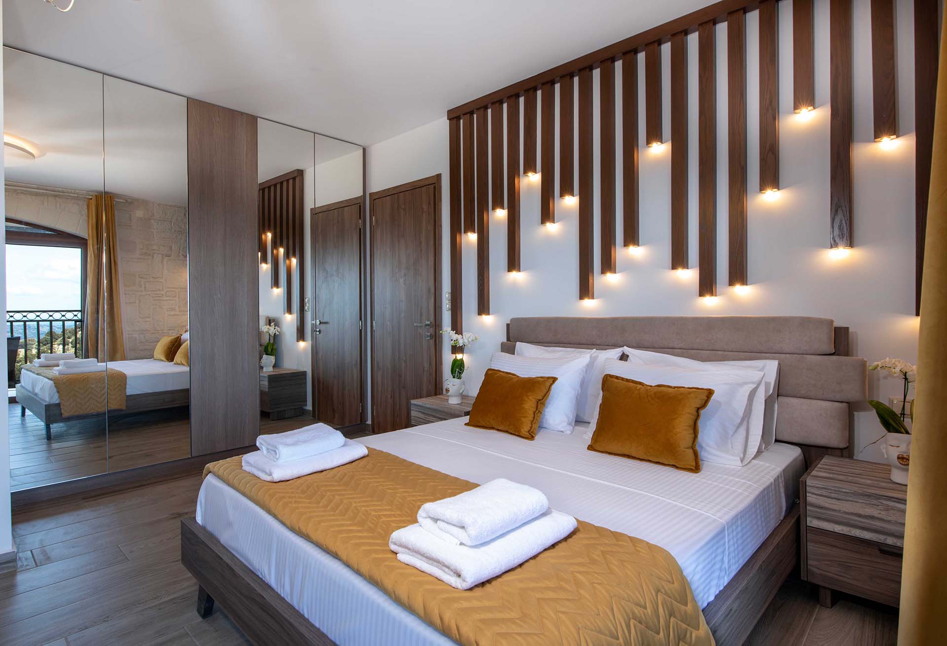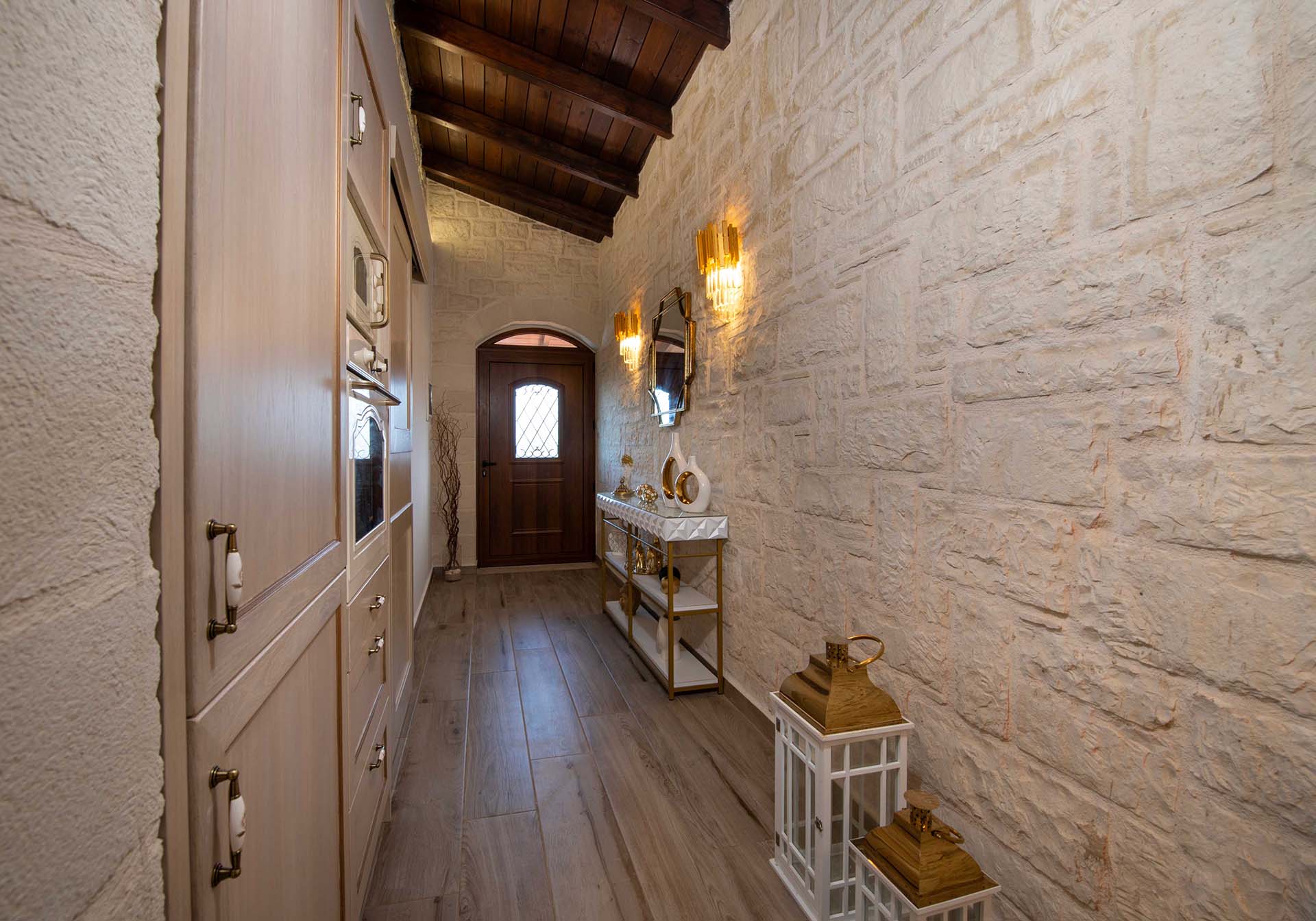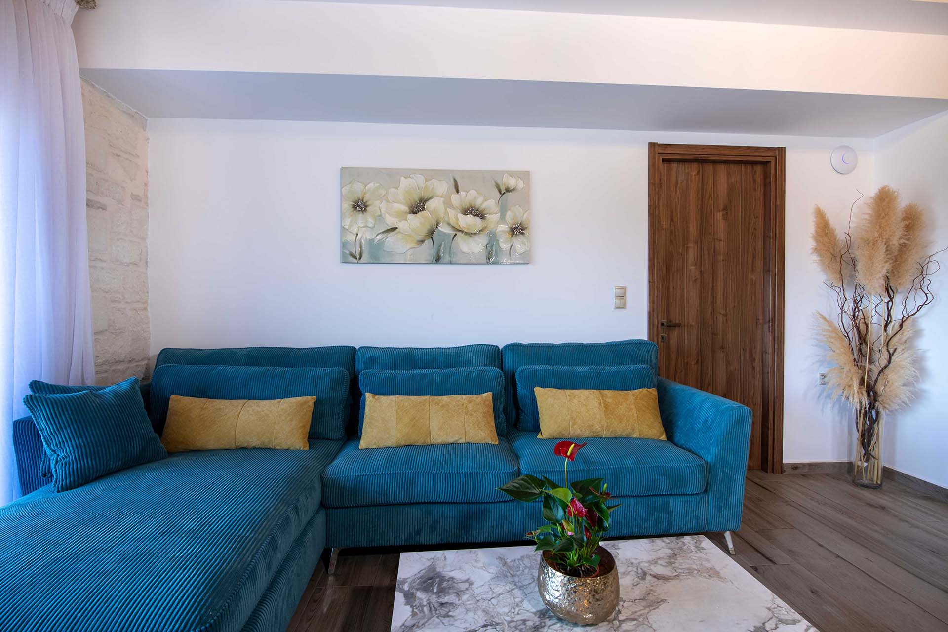 Geroulios Kastro – Deluxe Villa is located in the hills above Emprosneros, a quiet village in the Apokoronas region of Chania. The area is rural and surrounded by greenery, with very little through traffic and no nearby buildings.