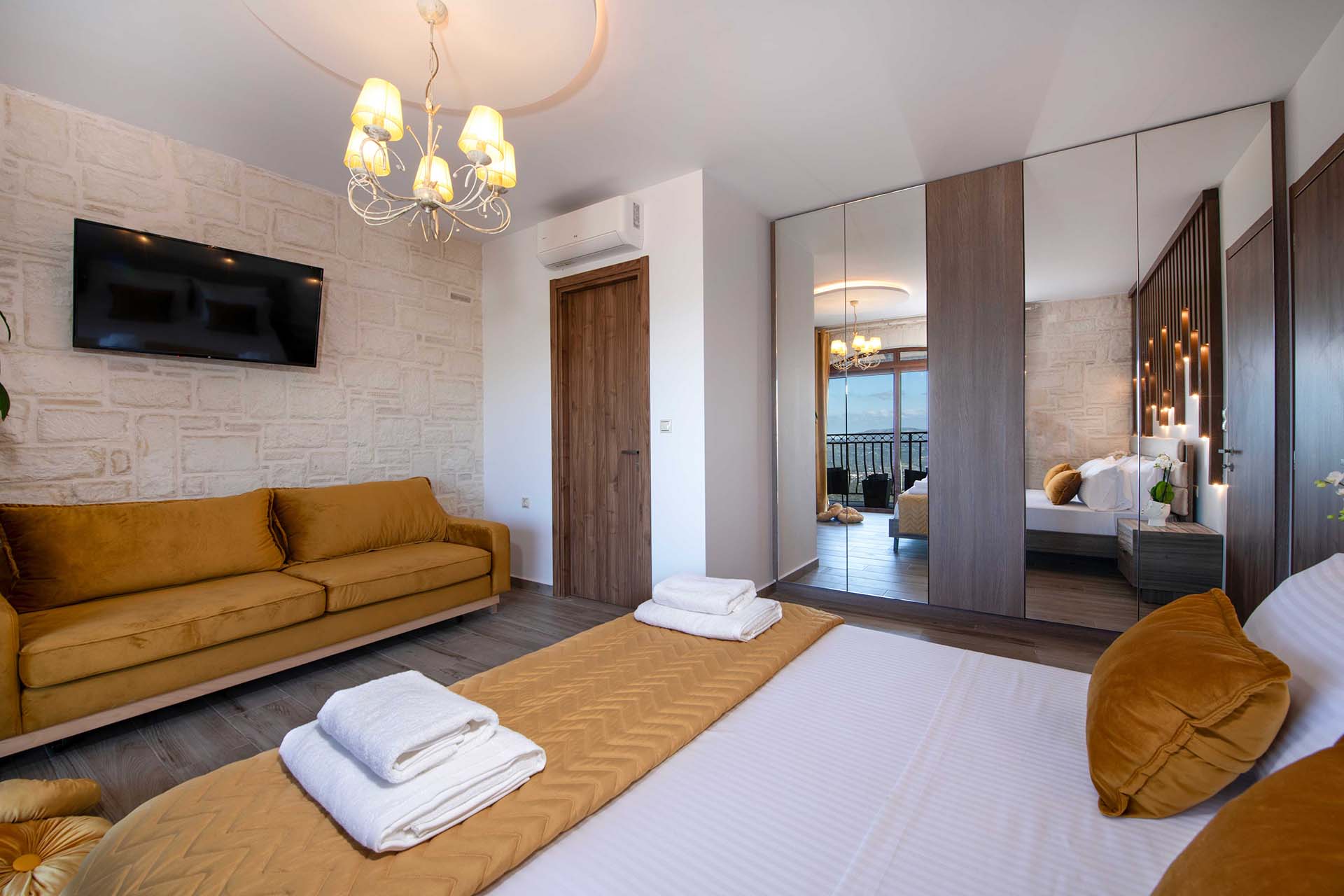 - Bedroom : Queen-size bed (1.60 × 2.00 m), A/C, 43’’ Smart TV, mountain view from the window